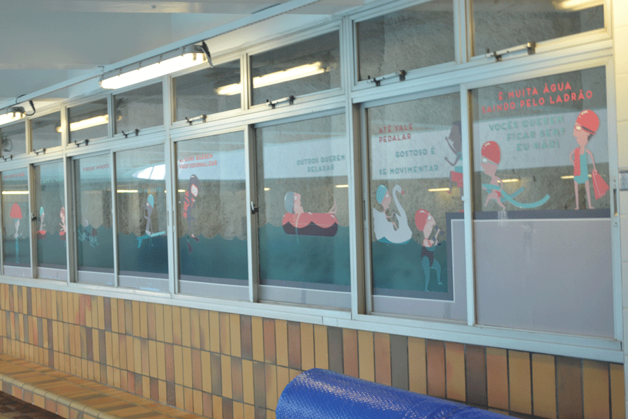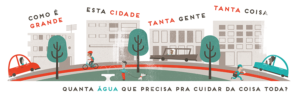 Intervenção Poética nas áreas relacionadas à água da unidade Ipiranga do Sesc São Paulo. O projeto envolveu desenvolvimento de texto, ilustração e ambientação. Projeto desenvolvido no Estúdio Kiwi.