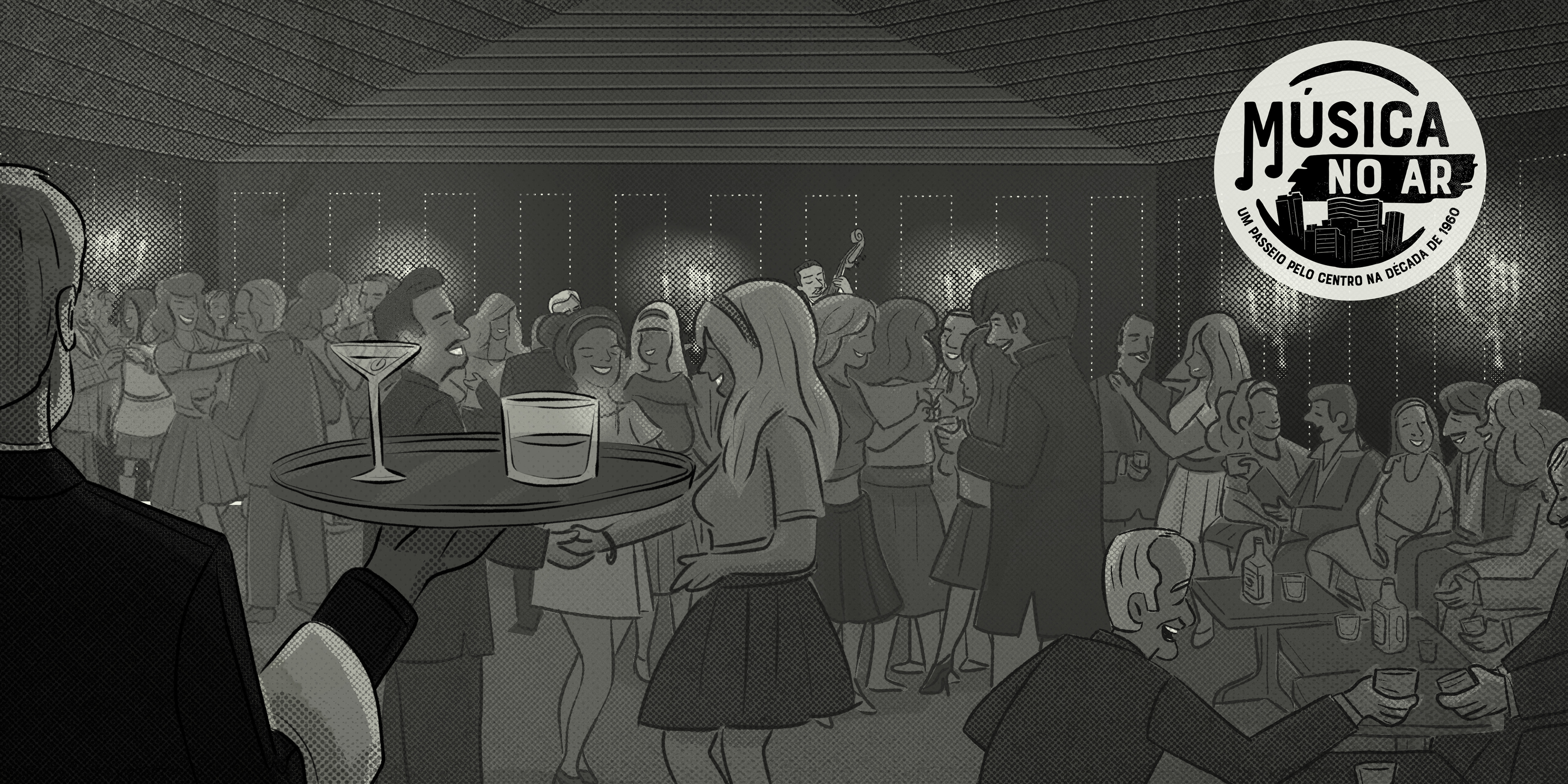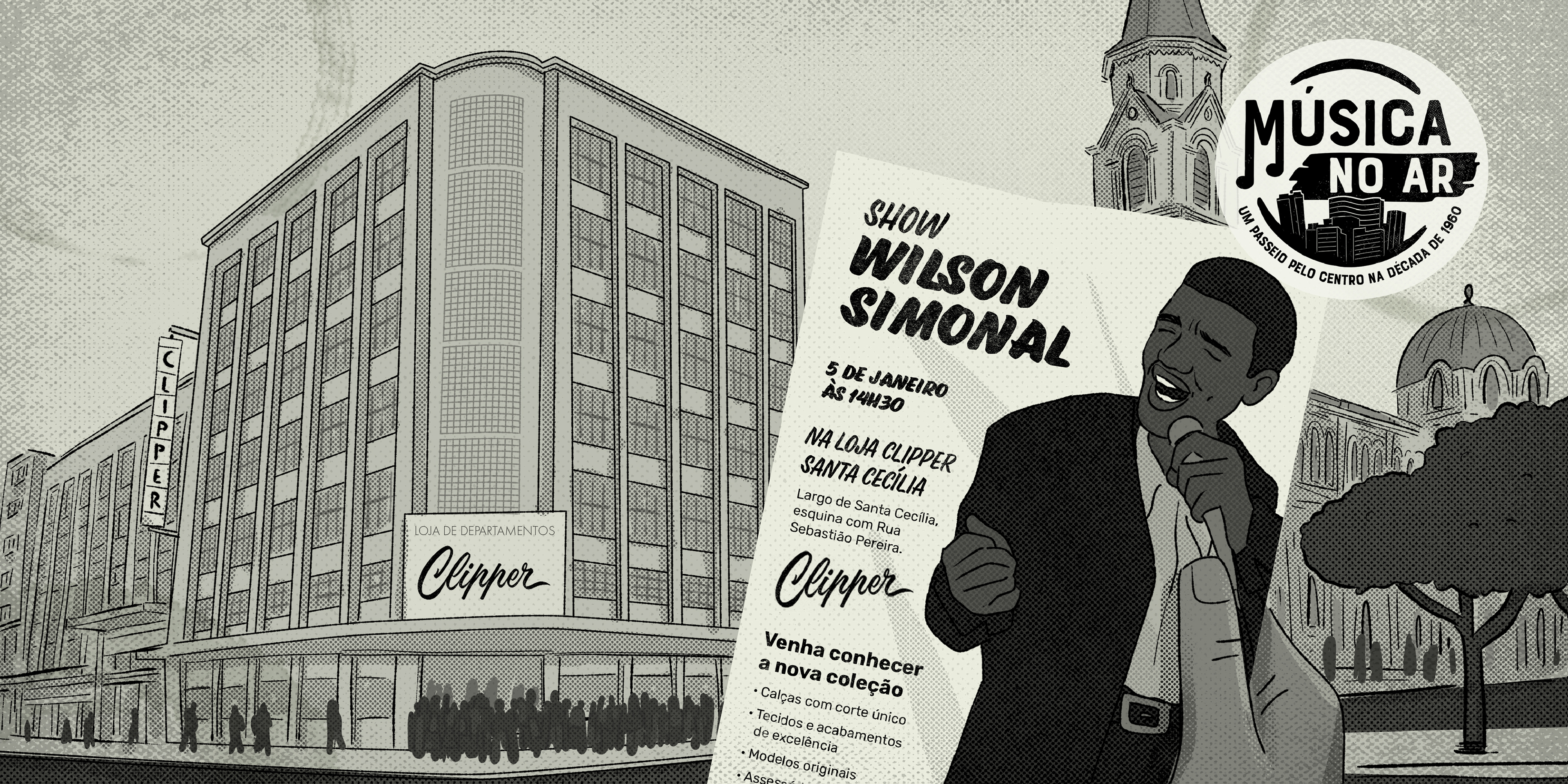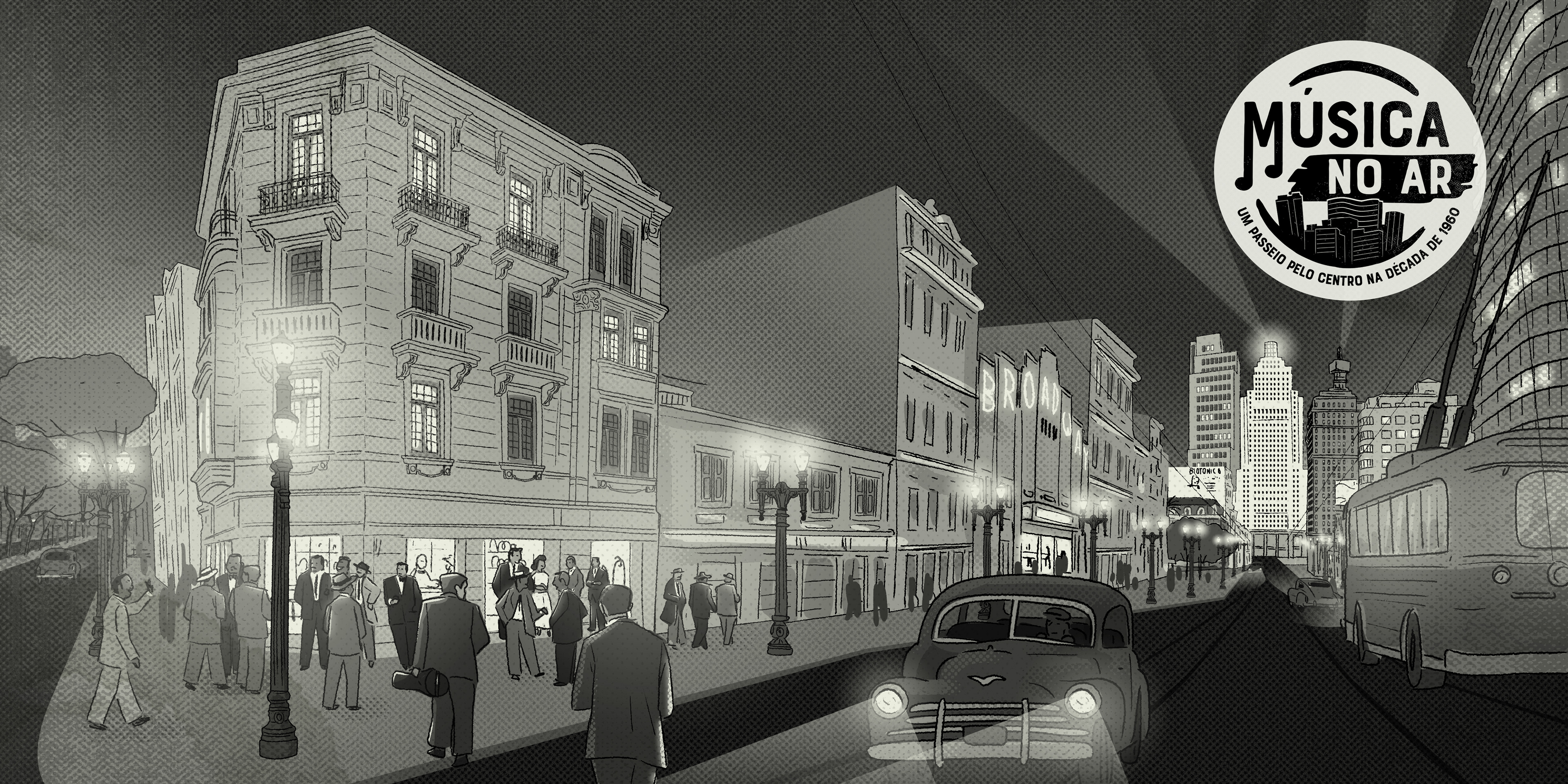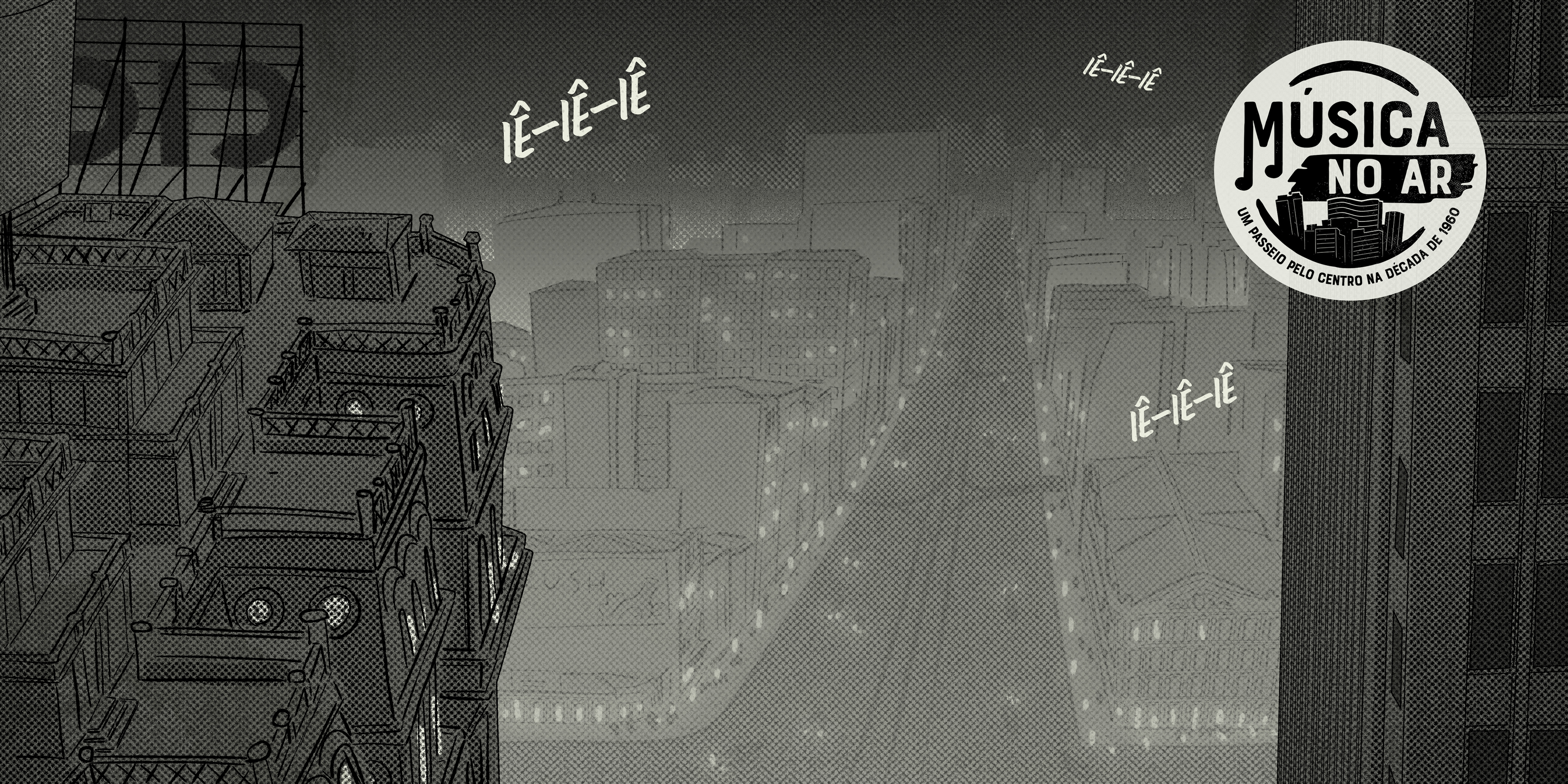 Música no ar - Um passeio pelo Centro na década de 1960. Projeto desenvolvido para o Sesc 24 de Maio, em São Paulo, ilustrando os textos do músico, pesquisador e jornalista Fernando Barros.