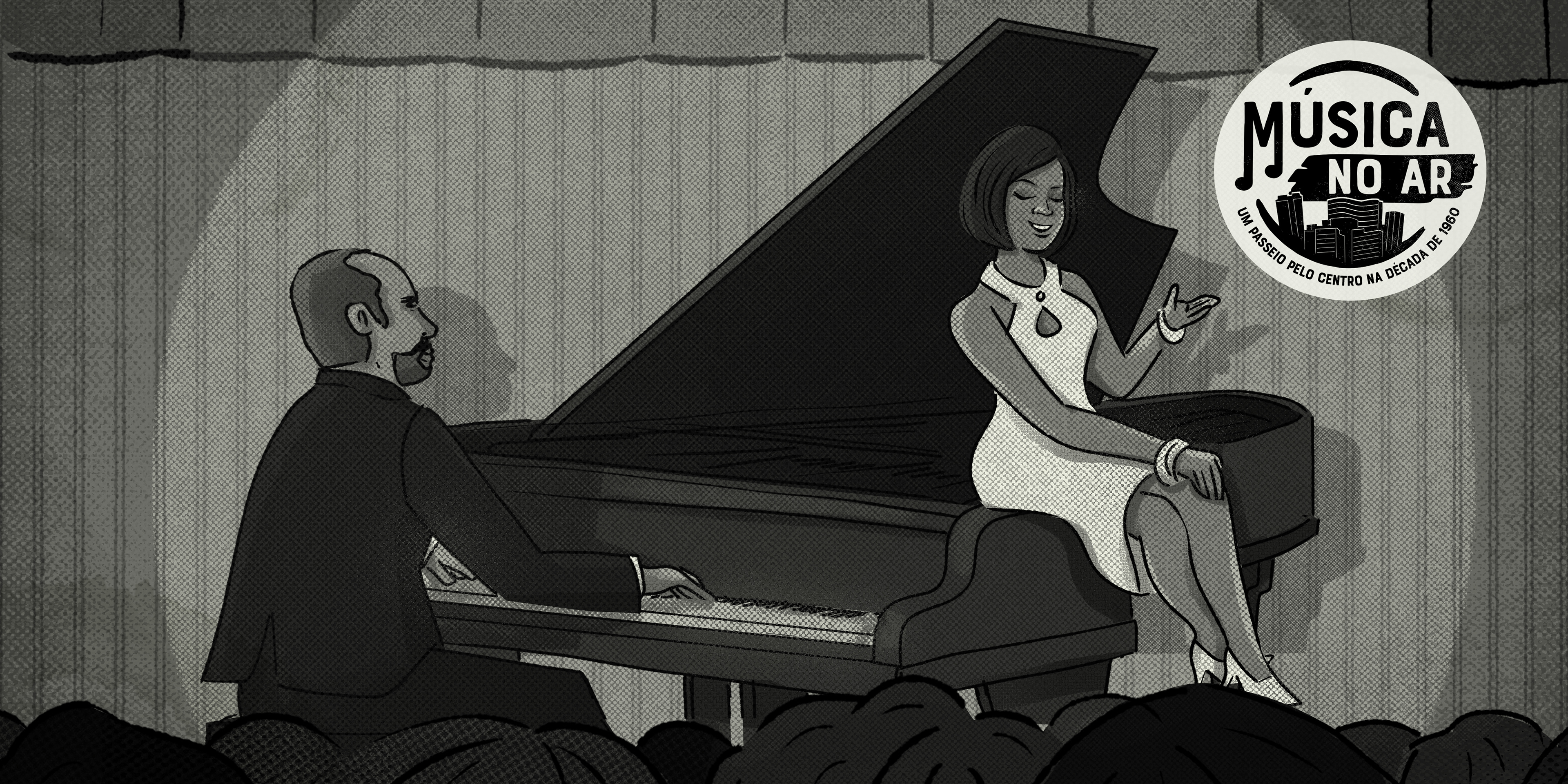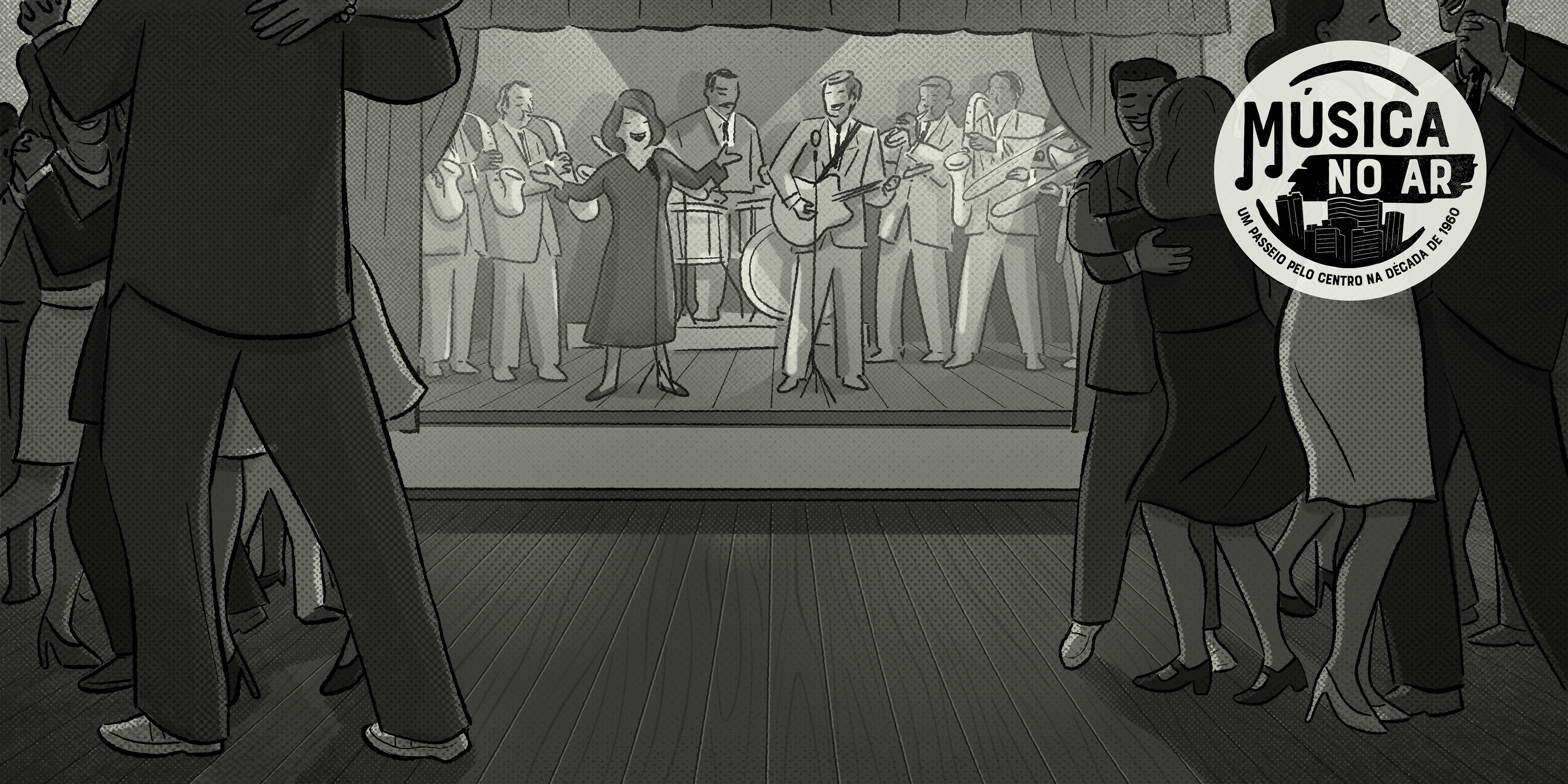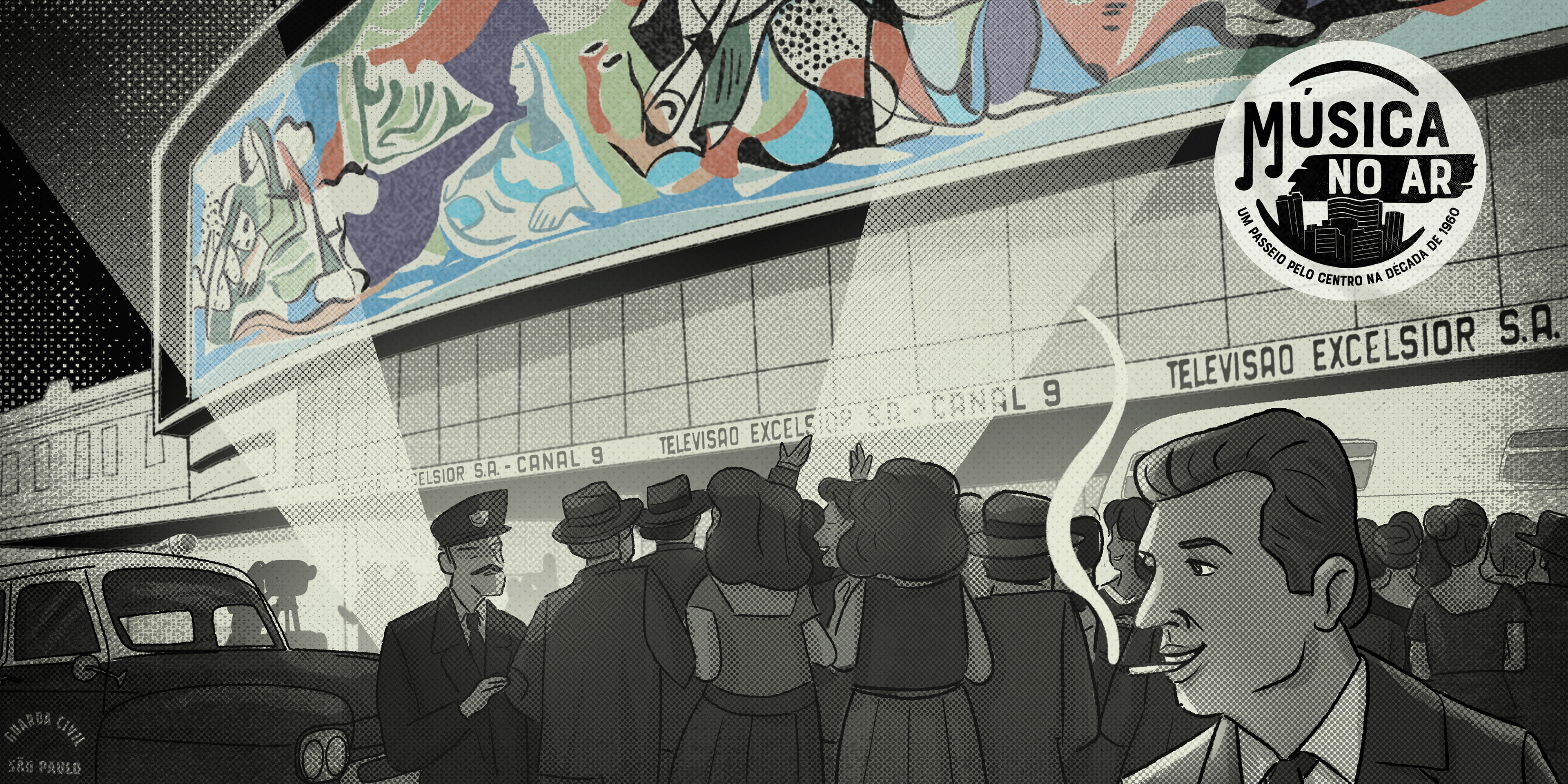 Música no ar - Um passeio pelo Centro na década de 1960. Projeto desenvolvido para o Sesc 24 de Maio, em São Paulo, ilustrando os textos do músico, pesquisador e jornalista Fernando Barros.