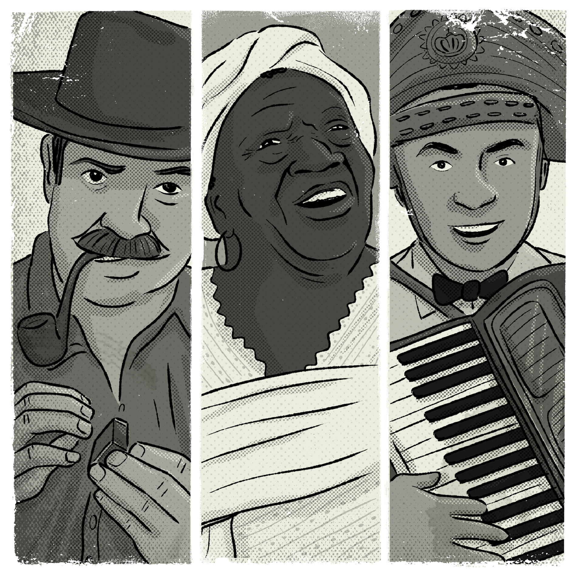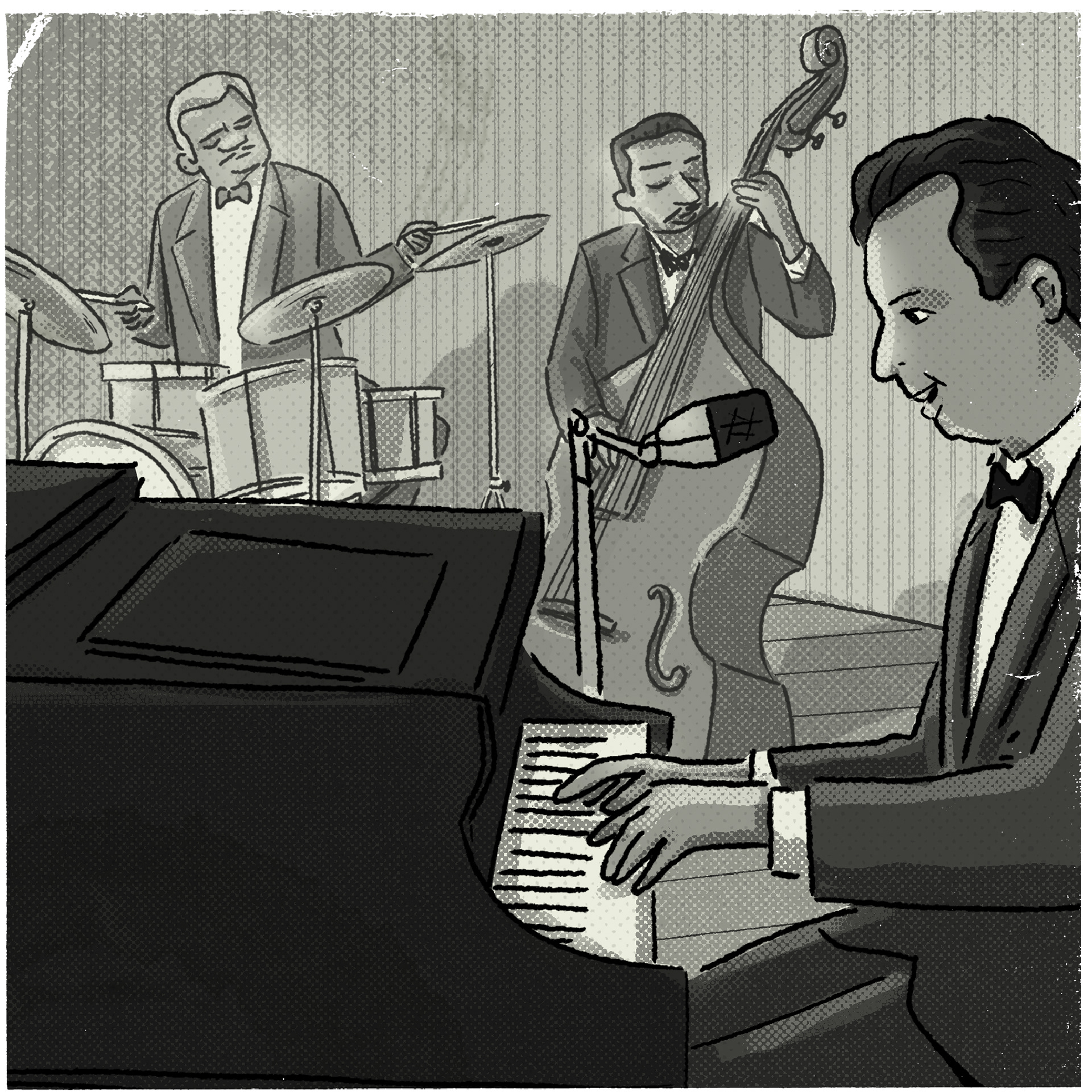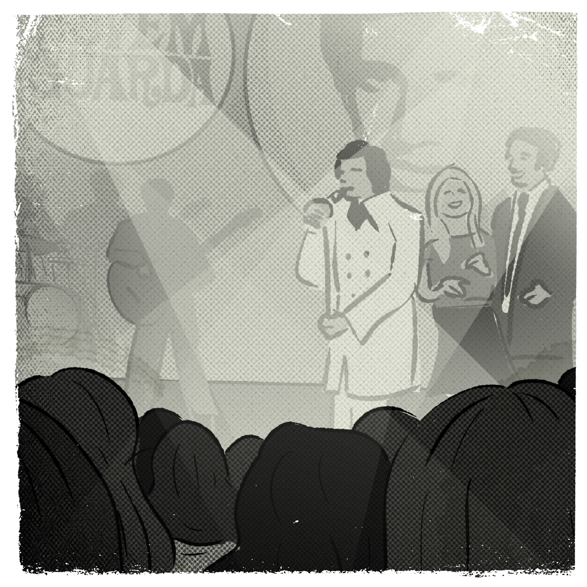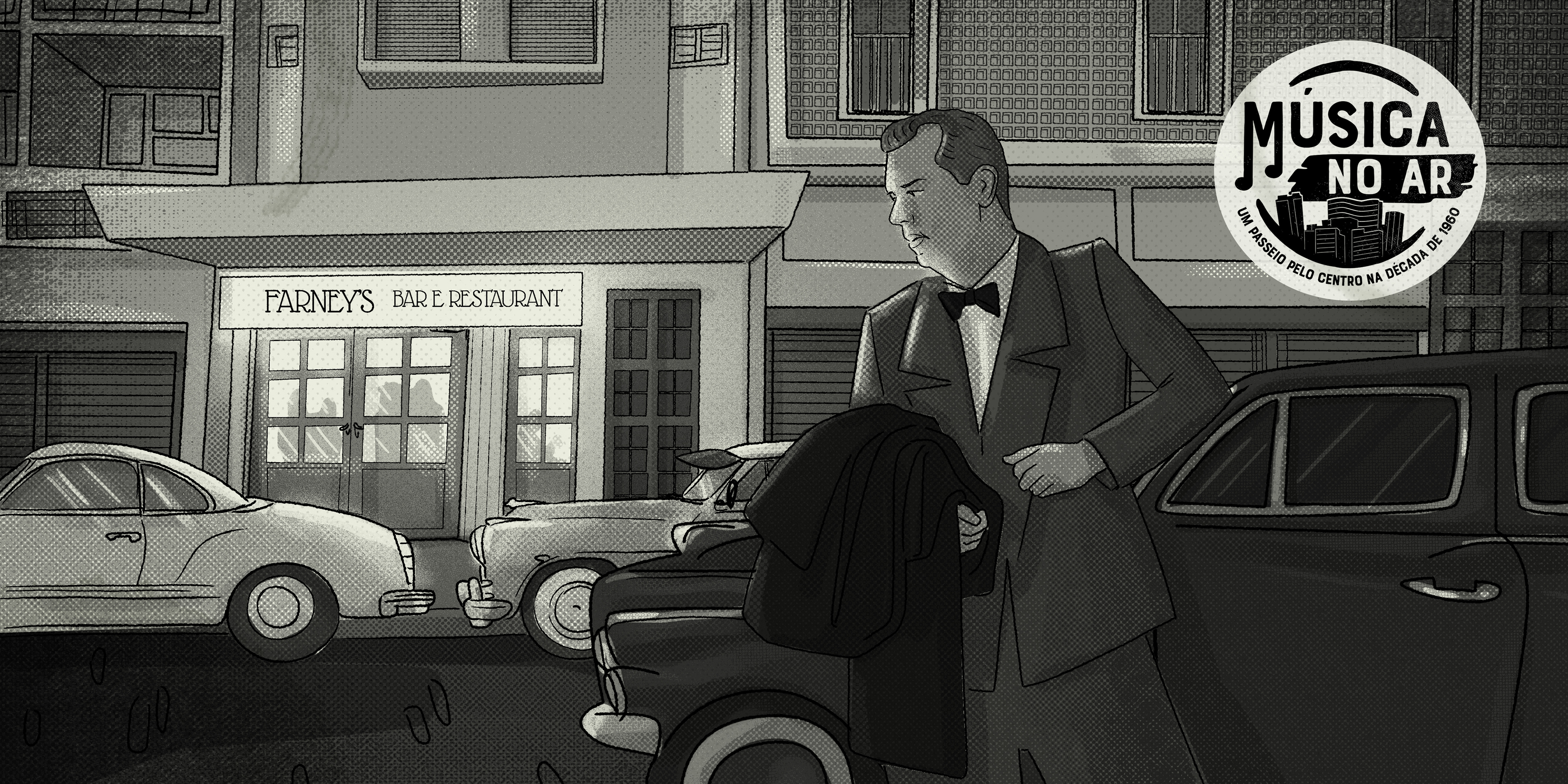 Música no ar - Um passeio pelo Centro na década de 1960. Projeto desenvolvido para o Sesc 24 de Maio, em São Paulo, ilustrando os textos do músico, pesquisador e jornalista Fernando Barros.